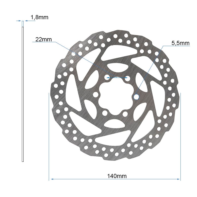 Με διάμετρο 140mm, ο δίσκος αυτός εντάσσεται στα πιο διαδεδομένα πρότυπα δισκόφρενων για ηλεκτρικά πατίνια μεσαίας και υψηλής κατηγορίας. Το βάρος των μόλις 153g τον καθιστά ελαφρύ χωρίς να επηρεάζει την ευρωστία και την αντοχή του, ενώ η γεωμετρία του εξασφαλίζει ομοιόμορφη κατανομή της πίεσης κατά την πέδηση.