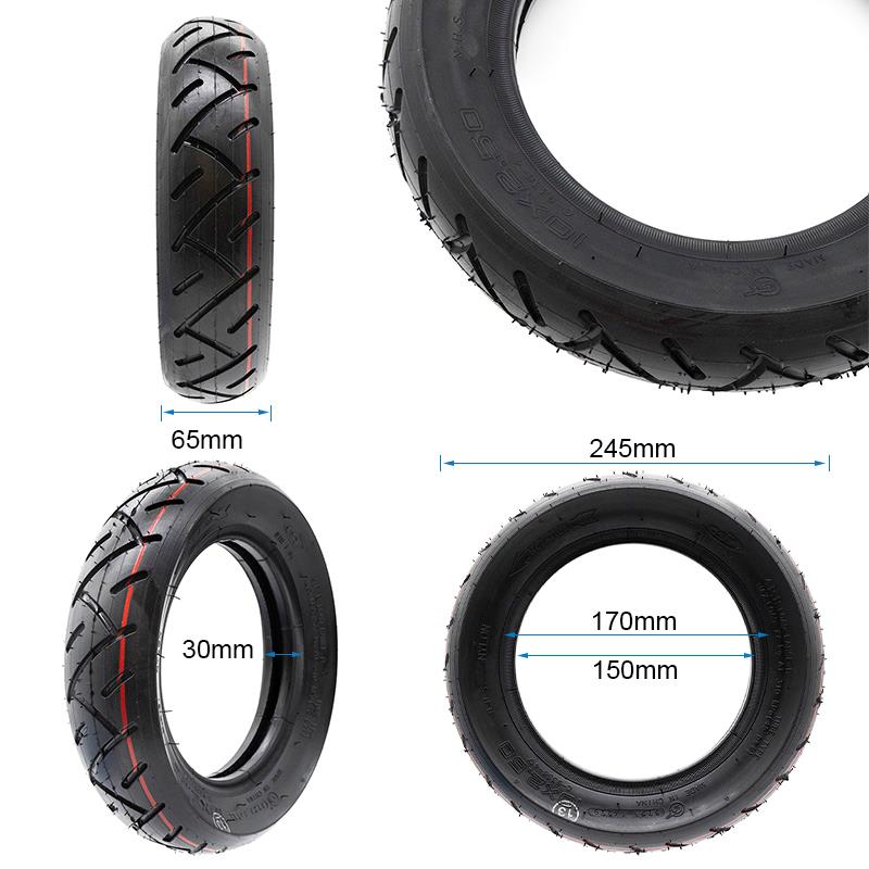 Οι διαστάσεις 10×2.5-6 το καθιστούν κατάλληλο για πατίνια με τροχούς 10 ιντσών, προσφέροντας επαρκές πλάτος για καλή πρόσφυξη σε διάφορες επιφάνειες — από λεία ασφαλτοστρωμένα πεζοδρόμια έως πιο ανώμαλα αστικά περιβάλλοντα. Το προφίλ του ελαστικού συμβάλλει στην απόσβεση κραδασμών, βελτιώνοντας την άνεση του οδηγού κατά τη διάρκεια της διαδρομής.