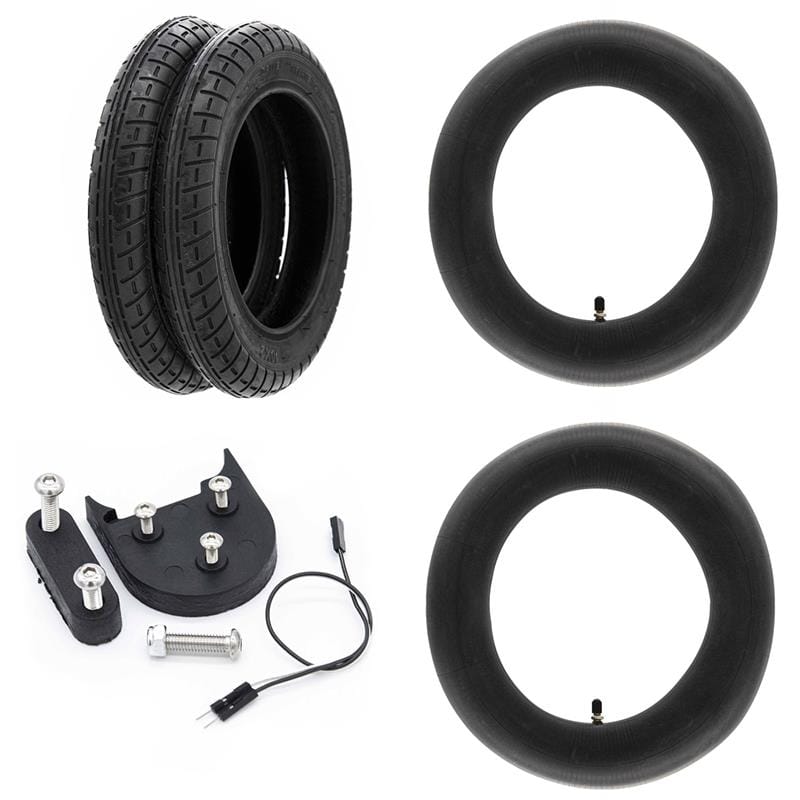 Ελαστικά 10×2-14 P Wanda: Πλήρες μαύρο κιτ για την τοποθέτηση τροχών 10 ιντσών που βελτιώνουν τη διάρκεια ζωής της αεροθαλάμης, την ταχύτητα και διαθέτουν εξαιρετική ευκολία στη συναρμολόγηση κατά την τοποθέτησή τους στη ζάντα. Περιλαμβάνει: -2 ελαστικά Wanda 10 ιντσών. -2 αεροθαλάμες 10×2 κατασκευασμένες από βουτυλικό καουτσούκ (πιο ανθεκτικό). -Αποστάτες για τη σέλα και το σταντ. -Βίδες και παξιμάδια για τους αποστάτες, το πίσω φτερό, το μπροστινό φτερό και το καλώδιο επέκτασης του πίσω φωτός.